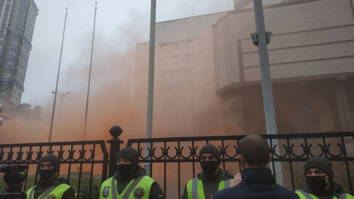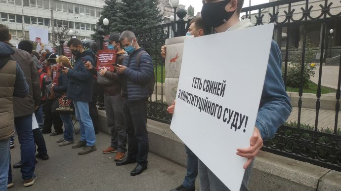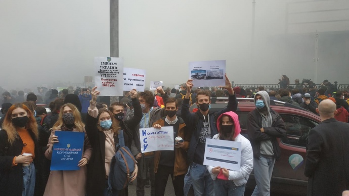 Під Конституційним судом проходить акція протесту проти рішення суддів про неконституційність ключових антикорупційних норм.