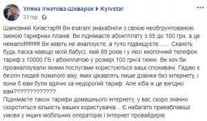 Люди вчергове обурюються необгрунтованими підняттями тарифів від компанії Київстар. Так, з 1 січня 2020 року підняття тарифу вдарить по найбільш незахищених верствах населення та пенсіонерах. Адже найбільш соціальний тариф, який становив 55 грн. тепер становиеме 100 грн. Також зросте плата за домашній інтернет, так якщо ви платили 100 грн, то зараз будуте платити 120 грн.