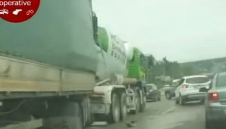 На опублікованих в соцмережах відео видно, що, принаймні, одну легкову машину дві фури буквально розчавили.