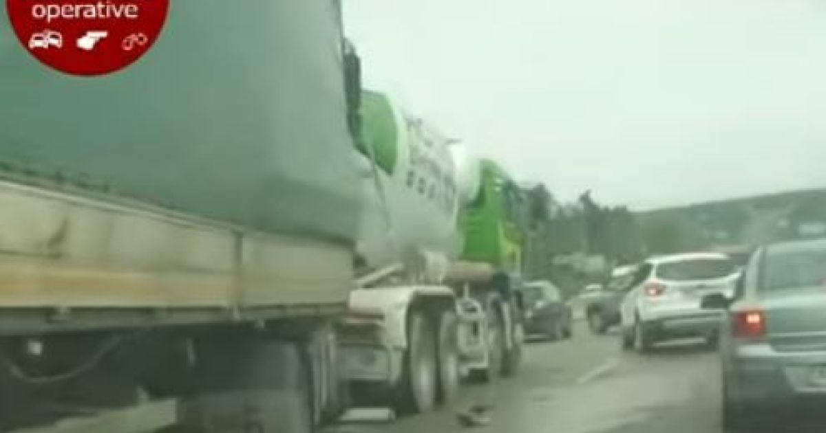 На виїзді з Києва у бік Одеси біля села Віта-Поштова сталася масштабна аварія за участю двох вантажівок та двох легкових автомобілів.