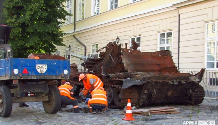 Цієї ночі на площі Ринок з тягачів почали вивантажувати рештки військової техніки загарбників, що її здобули під час боїв підрозділи ЗС України. До уваги львів’ян та гостей міста будуть представлені російський танк Т-72, самохідні артсистеми 2С19 «Мста-С» та 2С1 «Гвоздика», протитанковий ракетний комплекс «Штурм», самохідний зенітно-ракетний комплекс «Бук», рештки касетних боєприпасів ворога тощо.