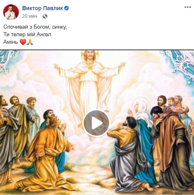 “Спочивай з Богом, синку. Ти тепер мій Ангел. Амінь”, – коротко написав артист.