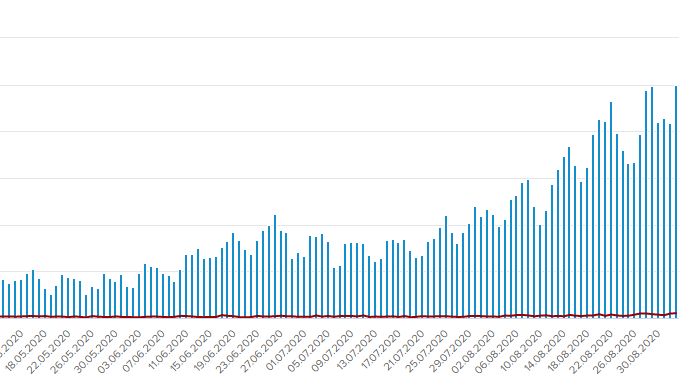 1 вересня в Україні діагноз COVID-19 підтвердився у рекордної кількості людей – 2 495 випадків, за добу помер 51 хворий, одужали ж від коронавірусу 1 015 осіб.