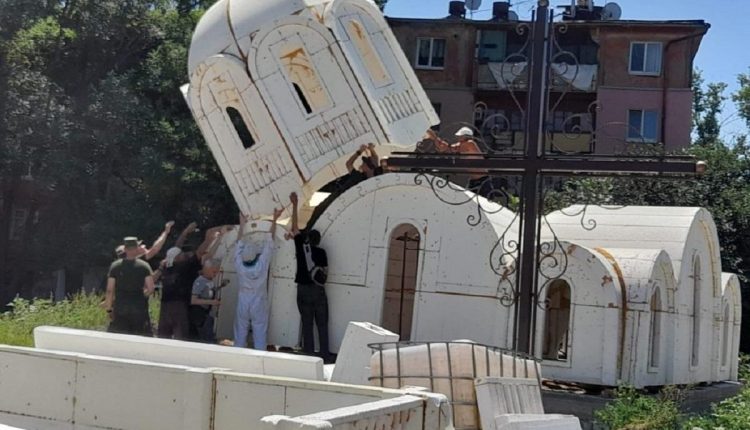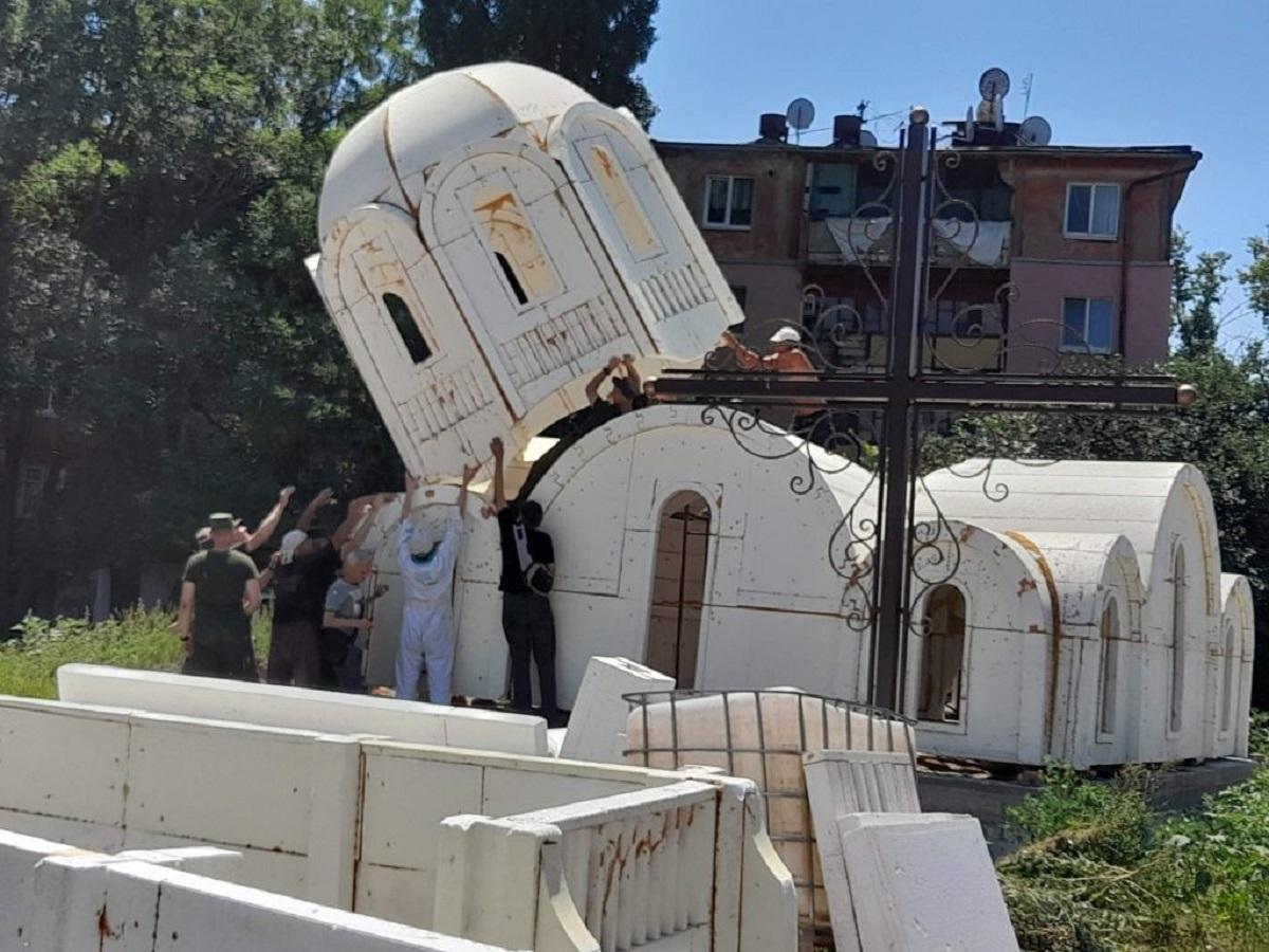 Громада Православної церкви України встановила у Херсоні церкву з пінопласту.