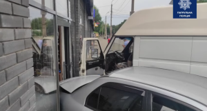 Некерований мікроавтобус продовжував рух й зіткнувся з маршруткою “Газель” та легковиком Mitsubishi Lancer, після чого в’їхав у будівлю кіоску. На місце ДТП попрямували правоохоронці, одразу ж викликавши медиків та додаткові екіпажі поліції. Потерпілого до приїзду “швидкої” вивільнили з понівеченого, йому надали домедичну допомогу.